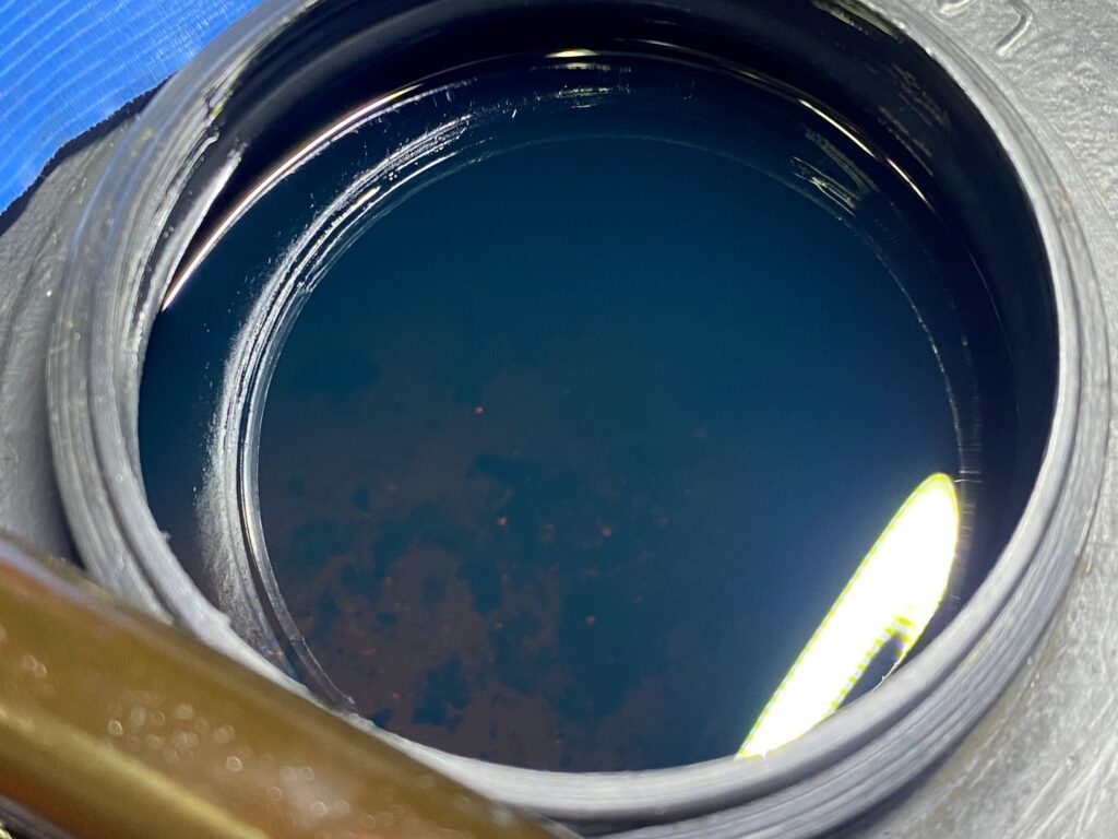 よく見てみると、燃料タンク下部に大量のスラッジがあります。これがストレーナーにくっついて