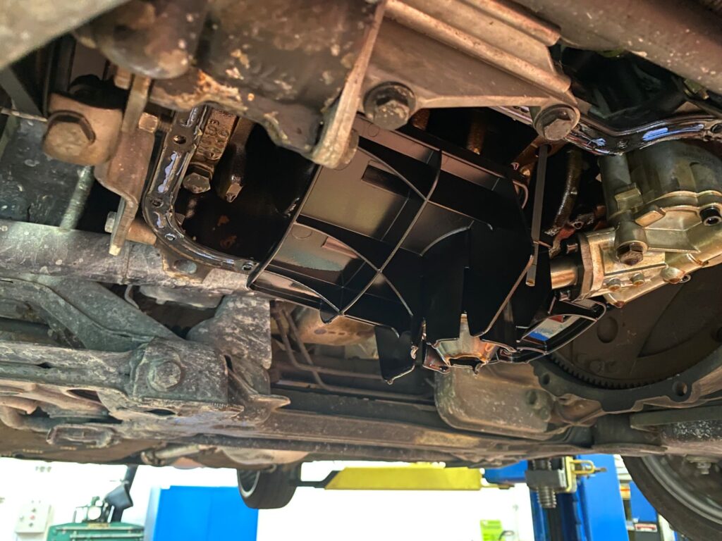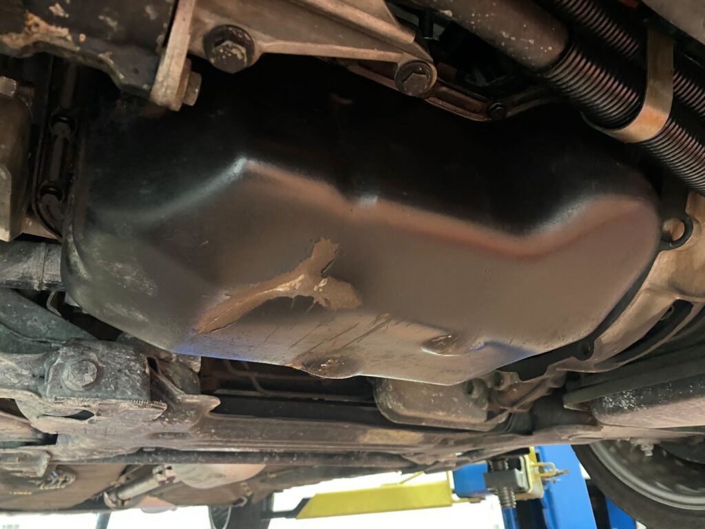 また、オイルパンをぶつけて凹んでいますので こちらは交換です。